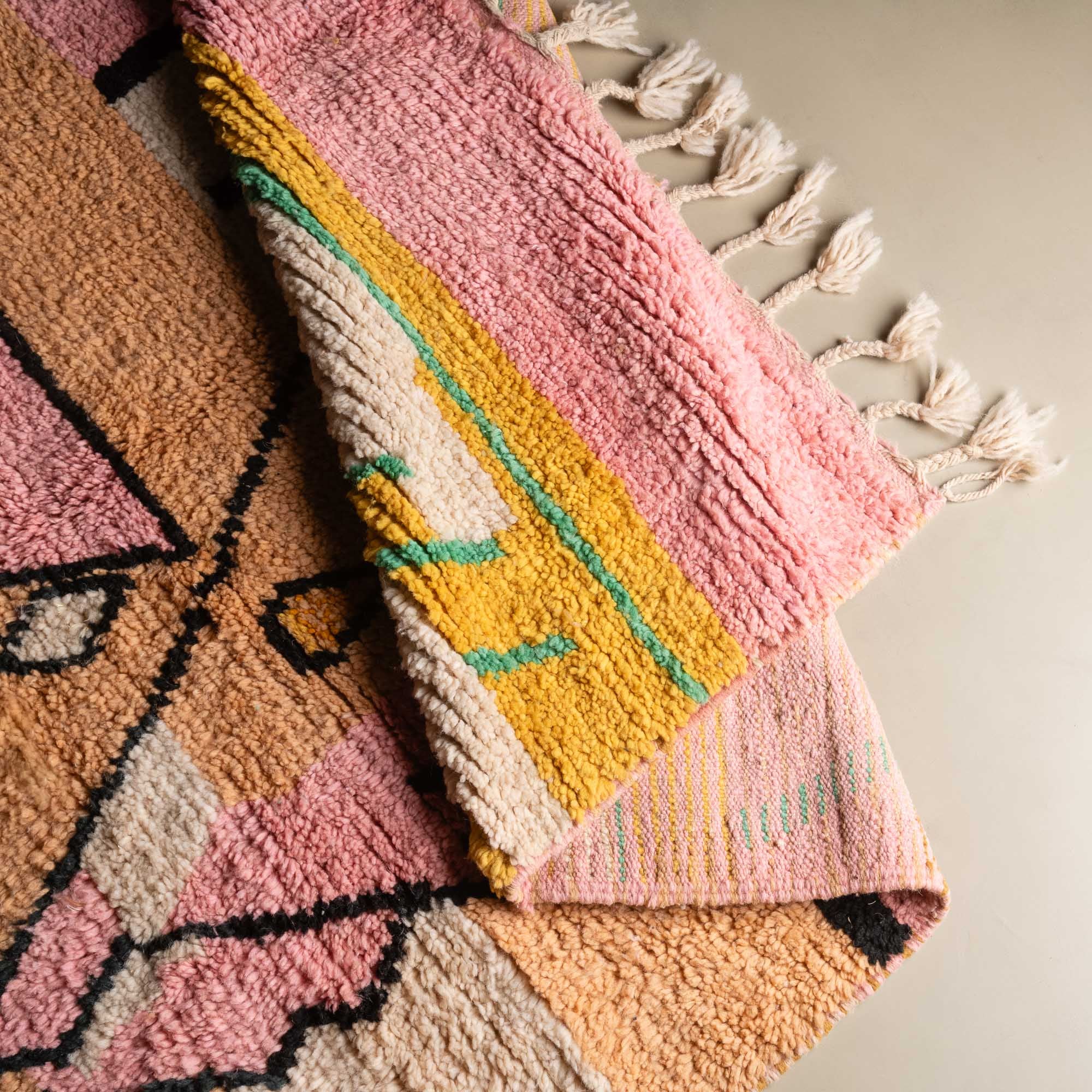 Boujad rugs are the result of a thousand-year-old know-how, transmitted from generation to generation by the women of the Boujad tribe. The colorful patterns of these rugs are inspired by nature and their beliefs.