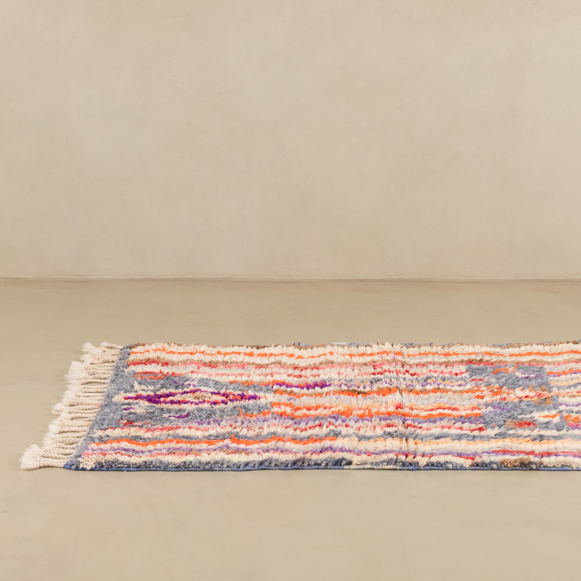 Stepping onto our Moroccan vintage rug feels like a gentle embrace for your feet, with its plush and soft wool fibers offering a comforting, velvety touch.