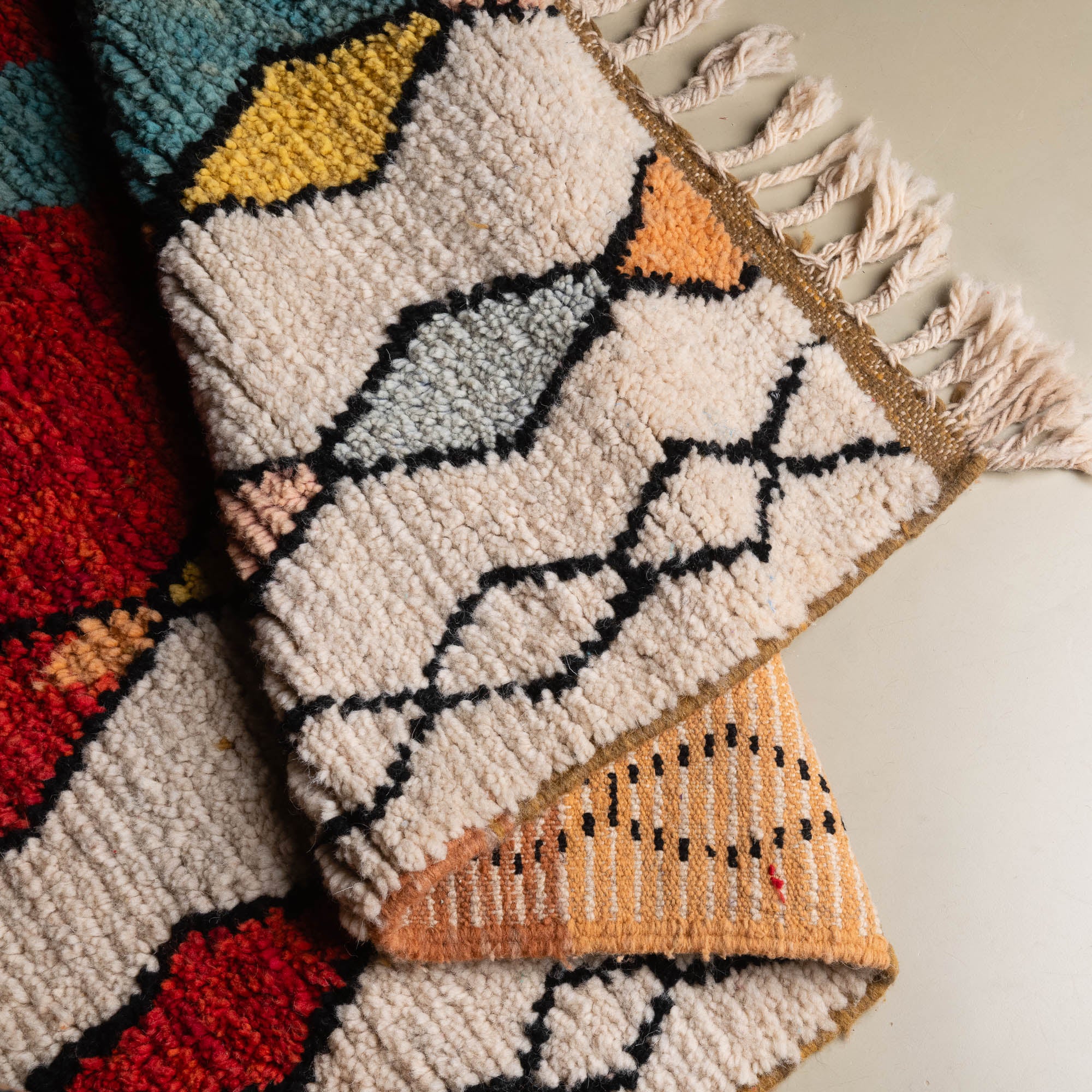 Boujad rugs are the result of a thousand-year-old know-how, transmitted from generation to generation by the women of the Boujad tribe. The colorful patterns of these rugs are inspired by nature and their beliefs.