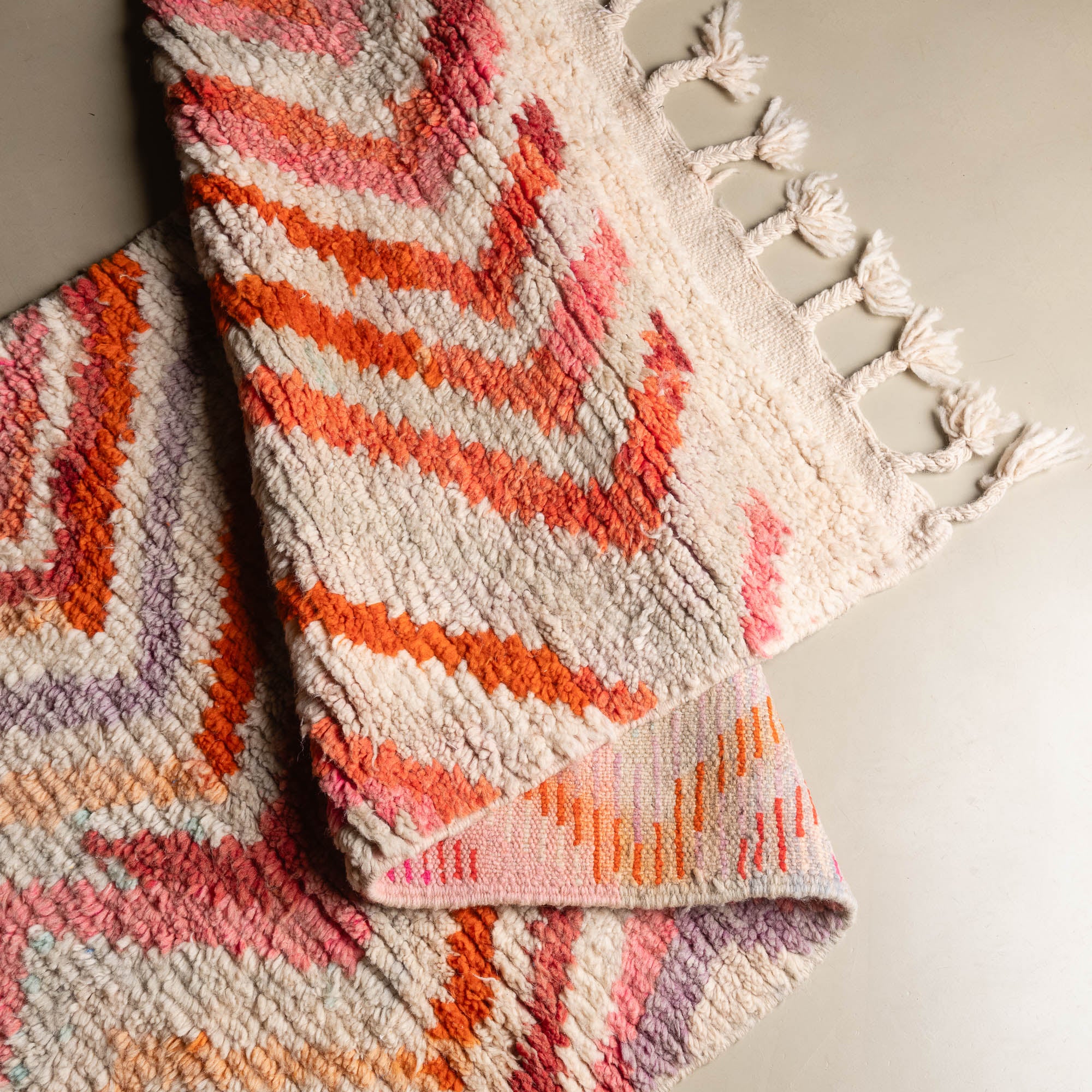 Boujad rugs are the result of a thousand-year-old know-how, transmitted from generation to generation by the women of the Boujad tribe. The colorful patterns of these rugs are inspired by nature and their beliefs.