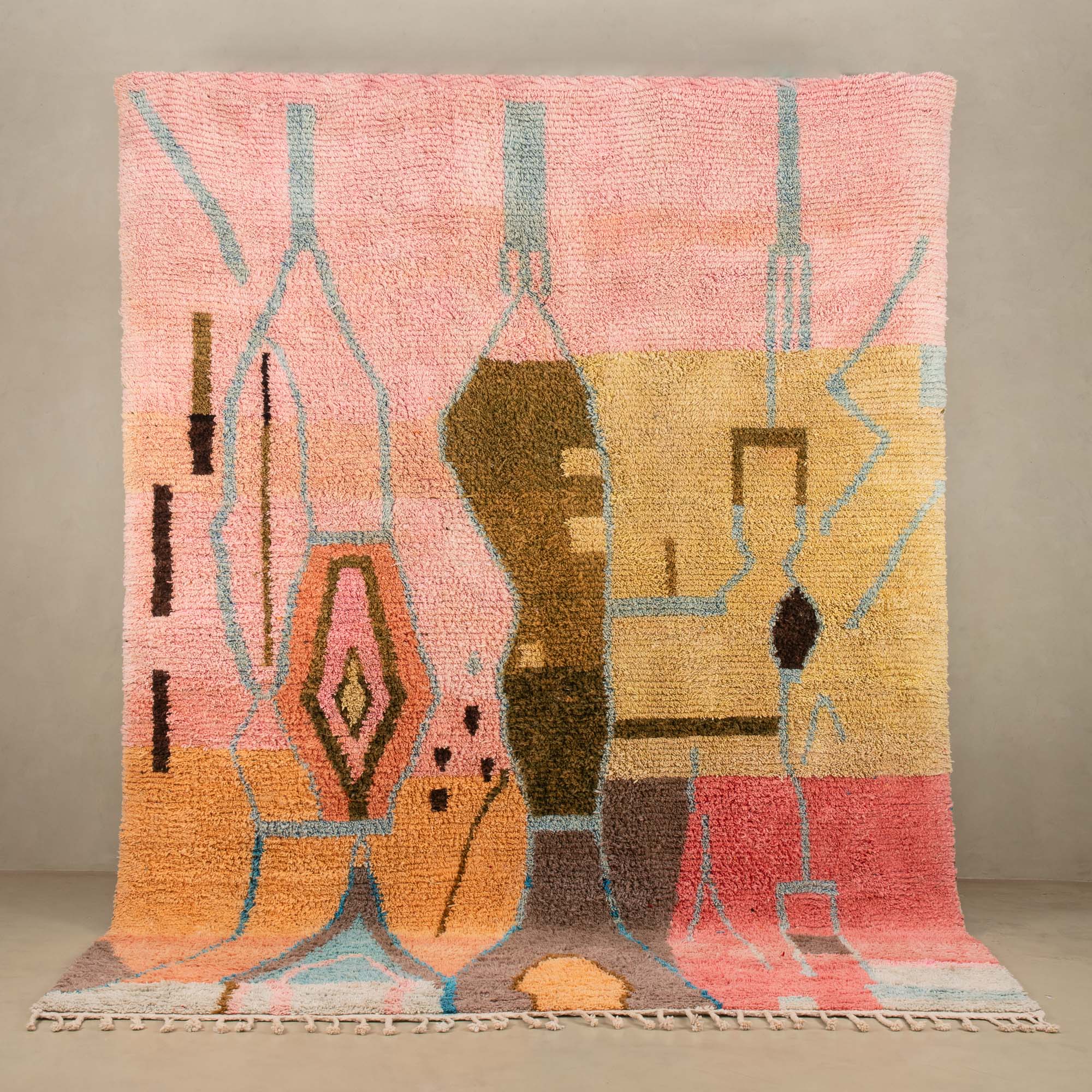 Boujad rugs are the result of a thousand-year-old know-how, transmitted from generation to generation by the women of the Boujad tribe. The colorful patterns of these rugs are inspired by nature and their beliefs.