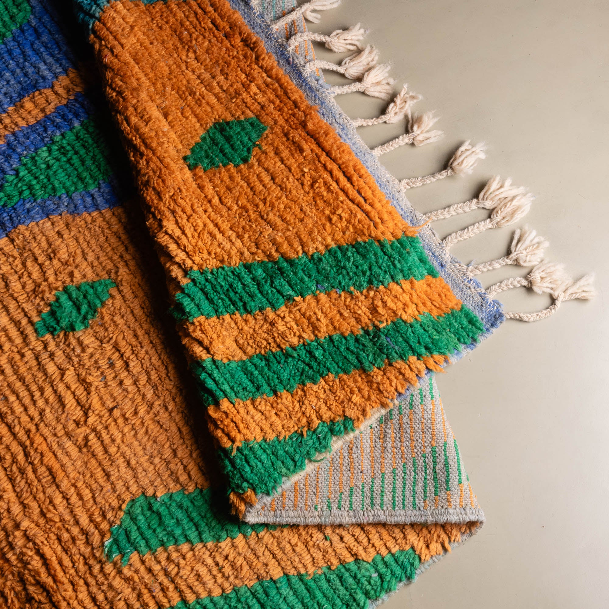 Boujad rugs are the result of a thousand-year-old know-how, transmitted from generation to generation by the women of the Boujad tribe. The colorful patterns of these rugs are inspired by nature and their beliefs.