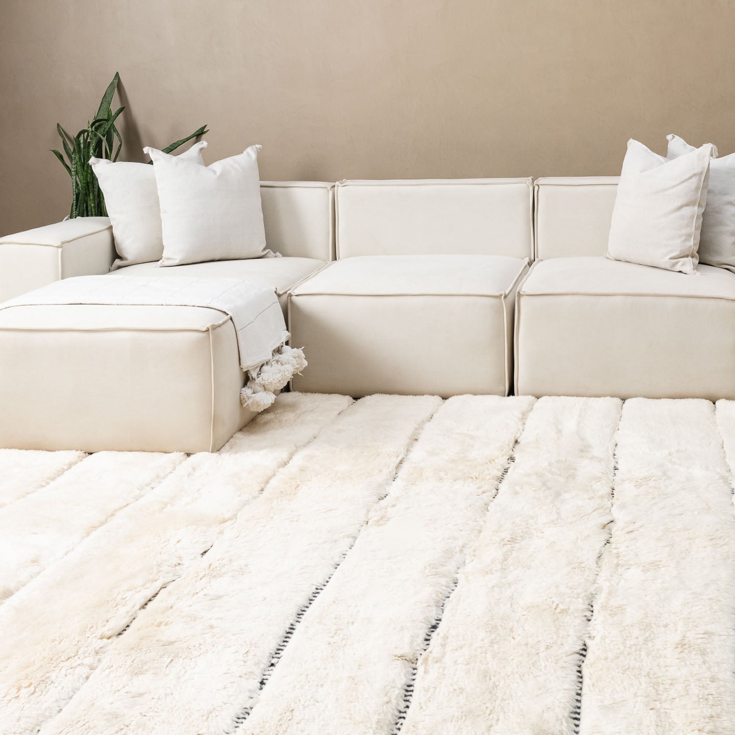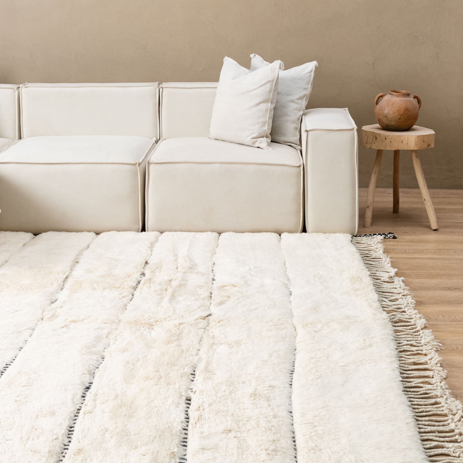 At Benisouk, we use only premium-grade wool from healthy, living sheep, ensuring our rugs are:
