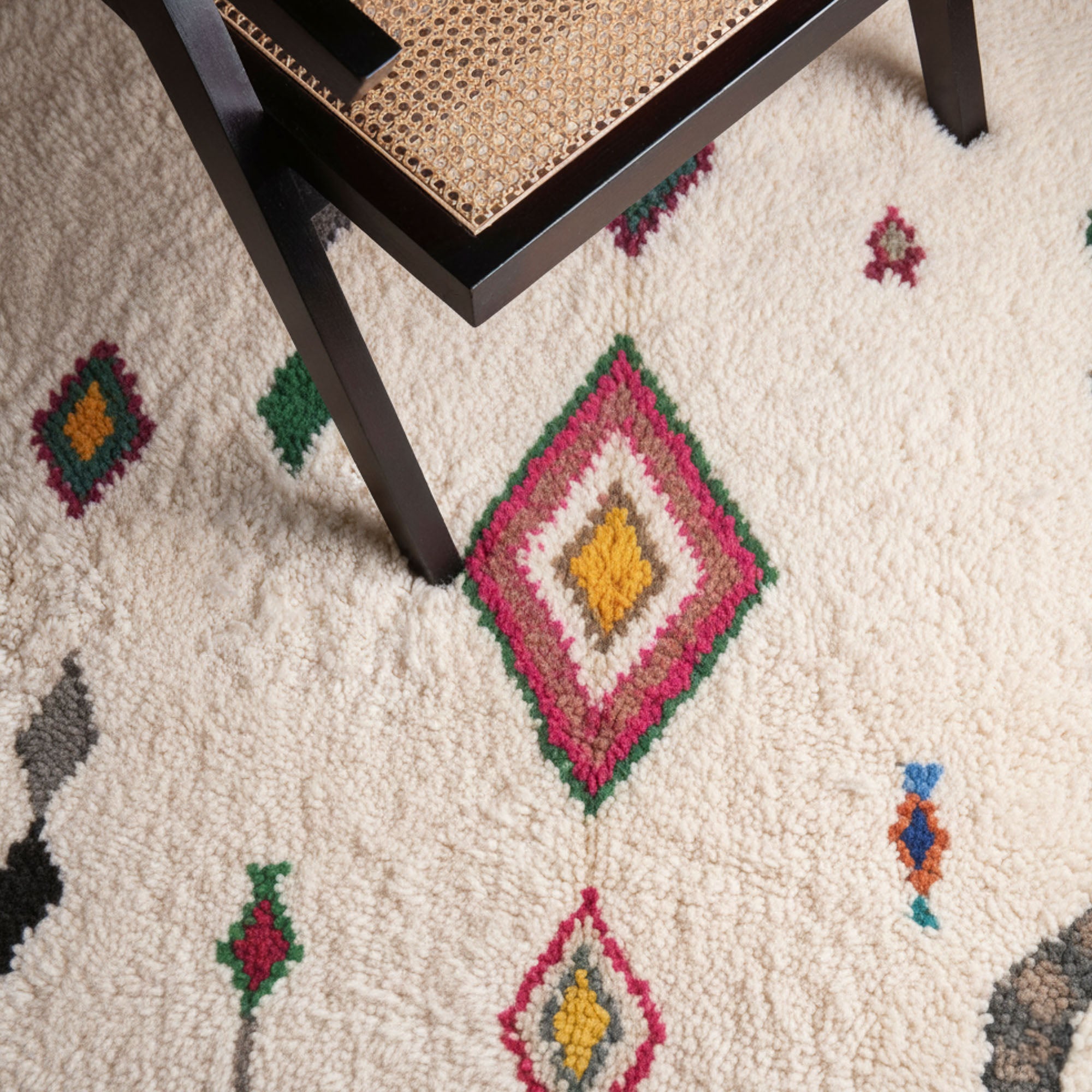 At Benisouk, we use only premium-grade wool from healthy, living sheep, ensuring our rugs are:
