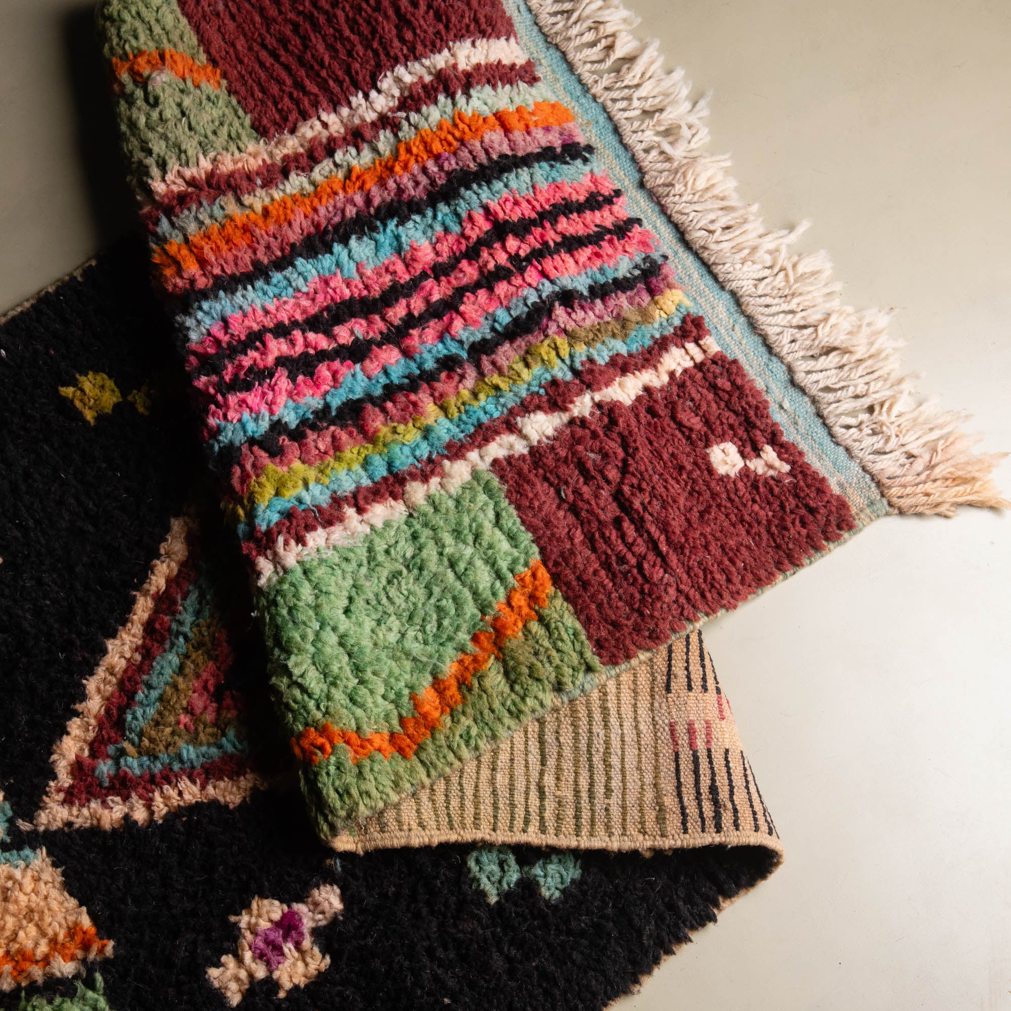 Boujad rugs are the result of a thousand-year-old know-how, transmitted from generation to generation by the women of the Boujad tribe. The colorful patterns of these rugs are inspired by nature and their beliefs.