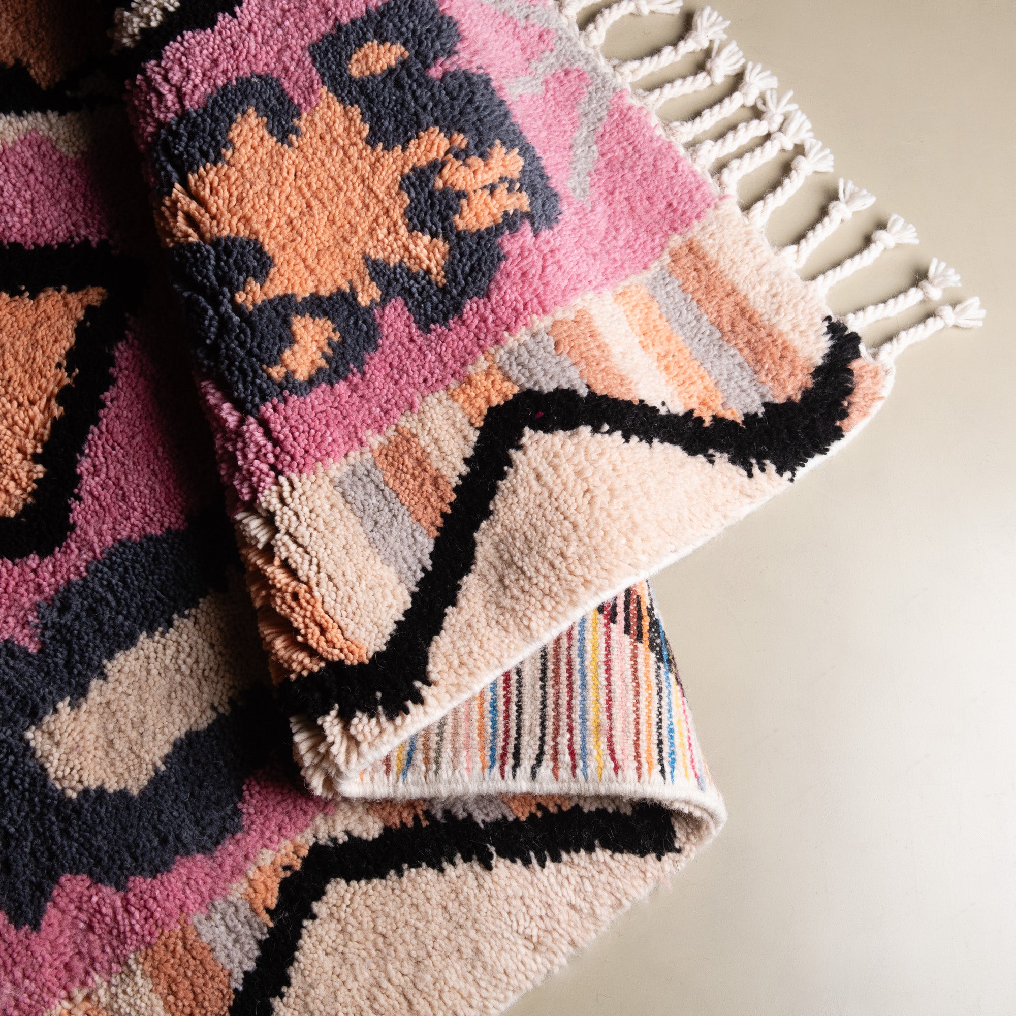 At Benisouk, we use only premium-grade wool from healthy, living sheep, ensuring our rugs are: