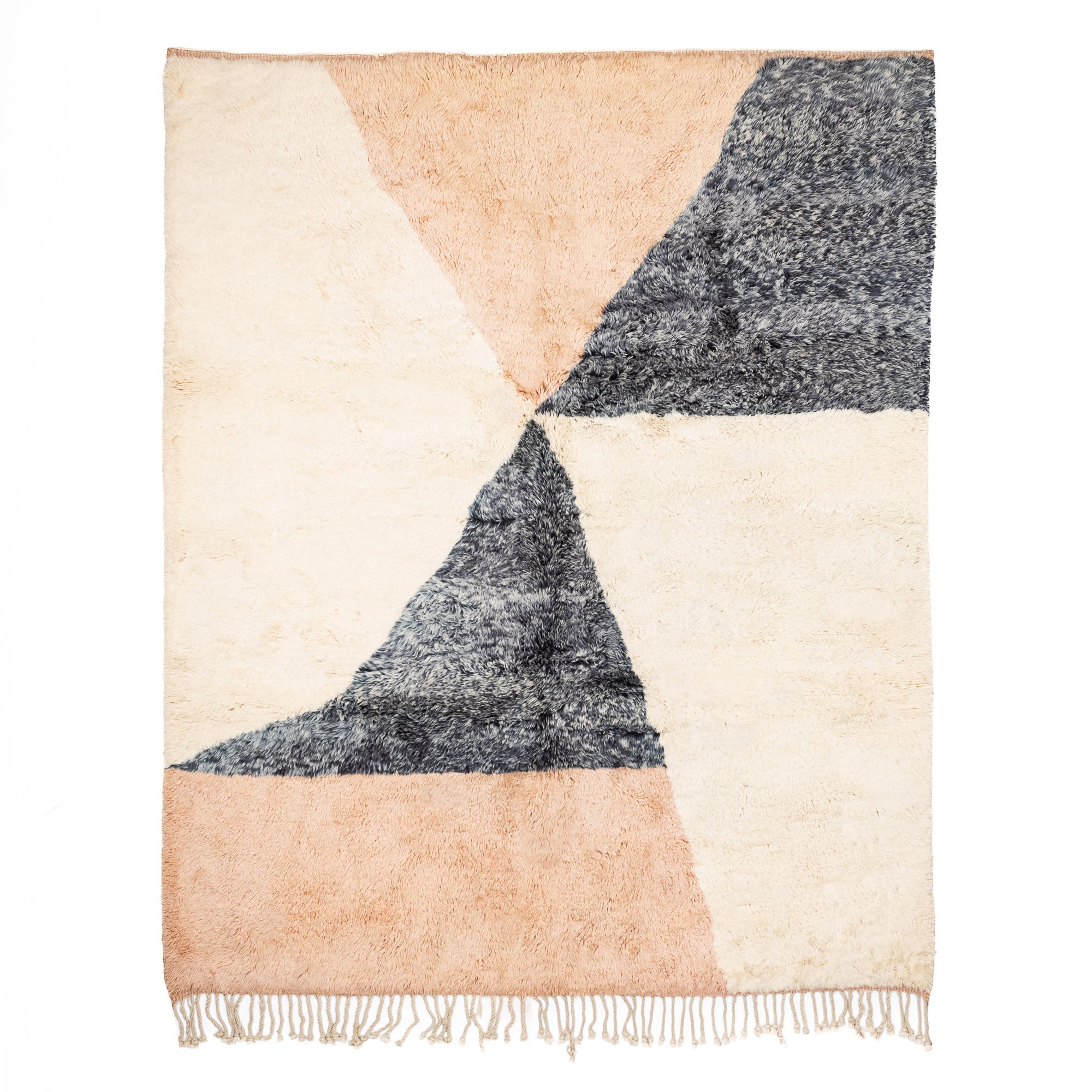 This rug was woven by the most talented artisans of the region of Beni mrirt. Craftswomen who always maintain the traditional and ancestral knowledge of their tribe. This ancient technique combined with a lush wool imported from Australia, allows to create rugs both artistic and refined. The result, a piece of art rich in culture and softness.