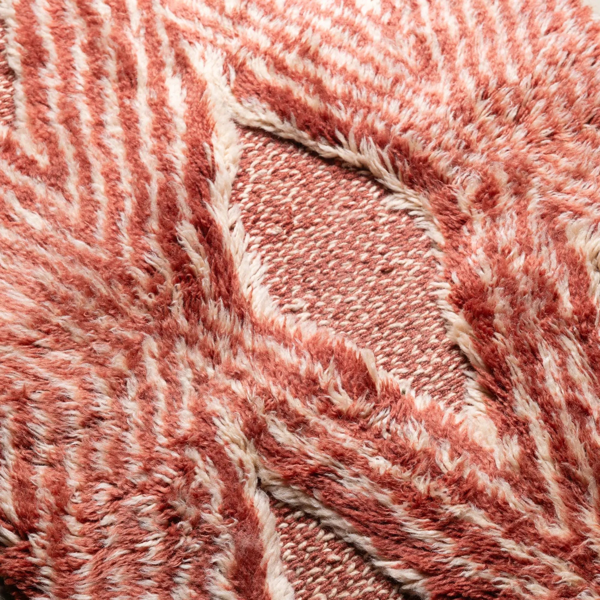 This rug was woven by the most talented artisans of the region of Beni mrirt. Craftswomen who always maintain the traditional and ancestral knowledge of their tribe. This ancient technique combined with a lush wool imported from Australia, allows to create rugs both artistic and refined. The result, a piece of art rich in culture and softness.