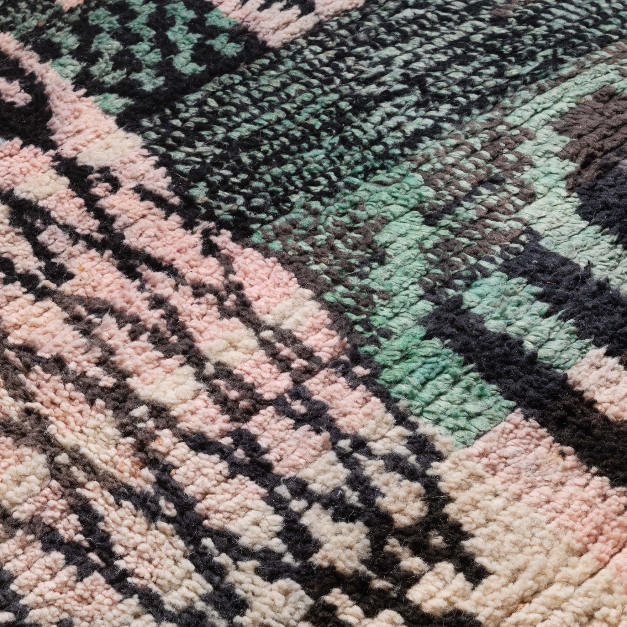 Stepping onto our Moroccan vintage rug feels like a gentle embrace for your feet, with its plush and soft wool fibers offering a comforting, velvety touch.