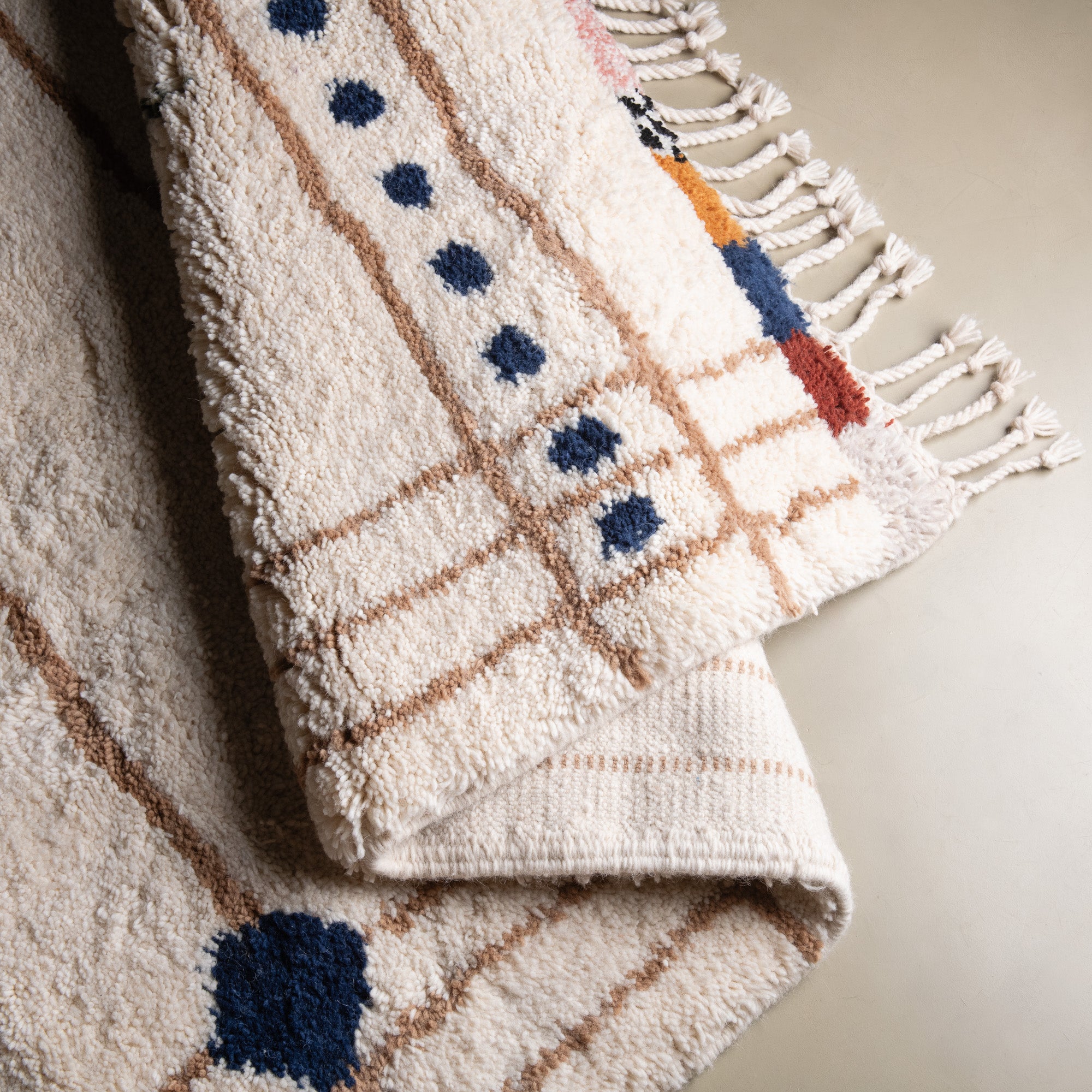 At Benisouk, we use only premium-grade wool from healthy, living sheep, ensuring our rugs are: