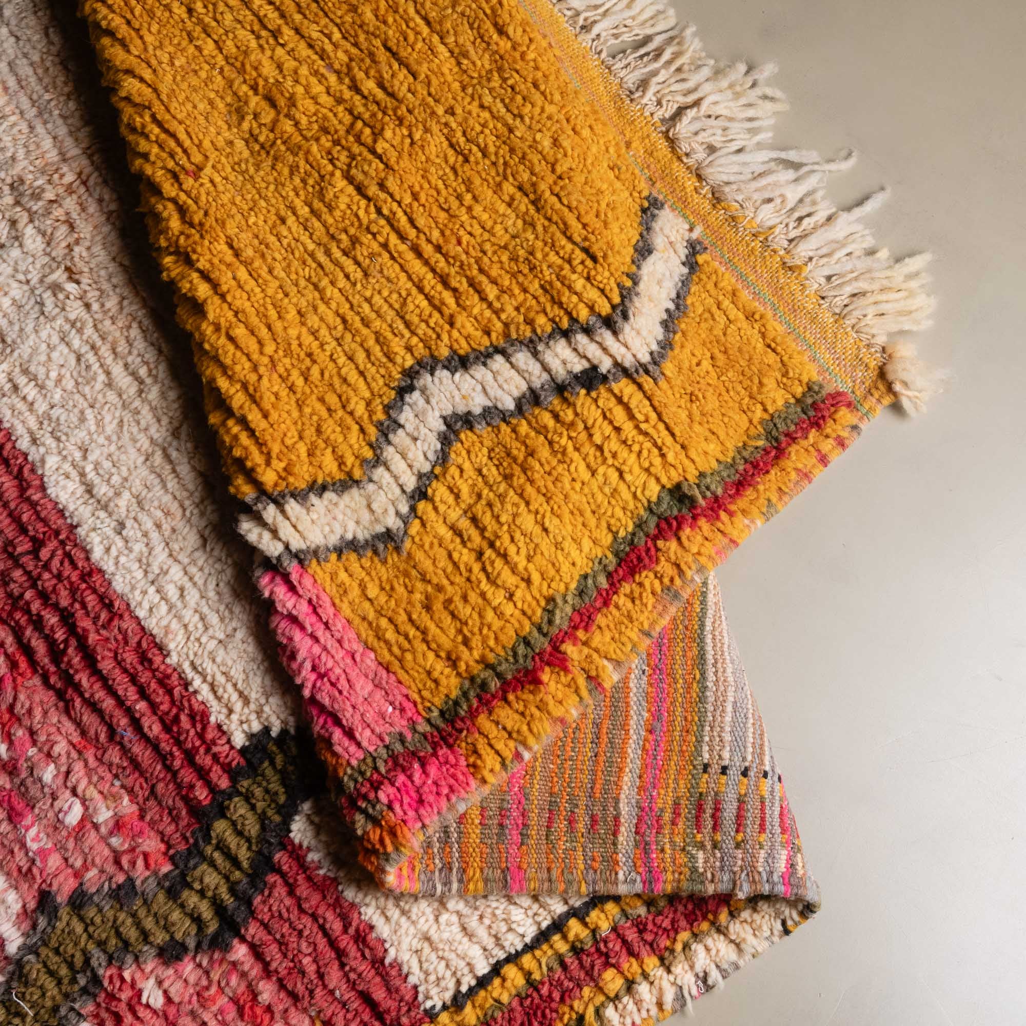 Boujad rugs are the result of a thousand-year-old know-how, transmitted from generation to generation by the women of the Boujad tribe. The colorful patterns of these rugs are inspired by nature and their beliefs.