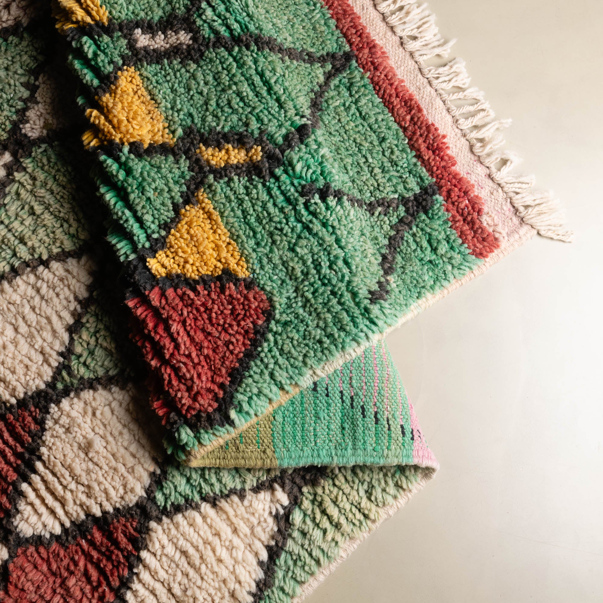 Boujad rugs are the result of a thousand-year-old know-how, transmitted from generation to generation by the women of the Boujad tribe. The colorful patterns of these rugs are inspired by nature and their beliefs.
