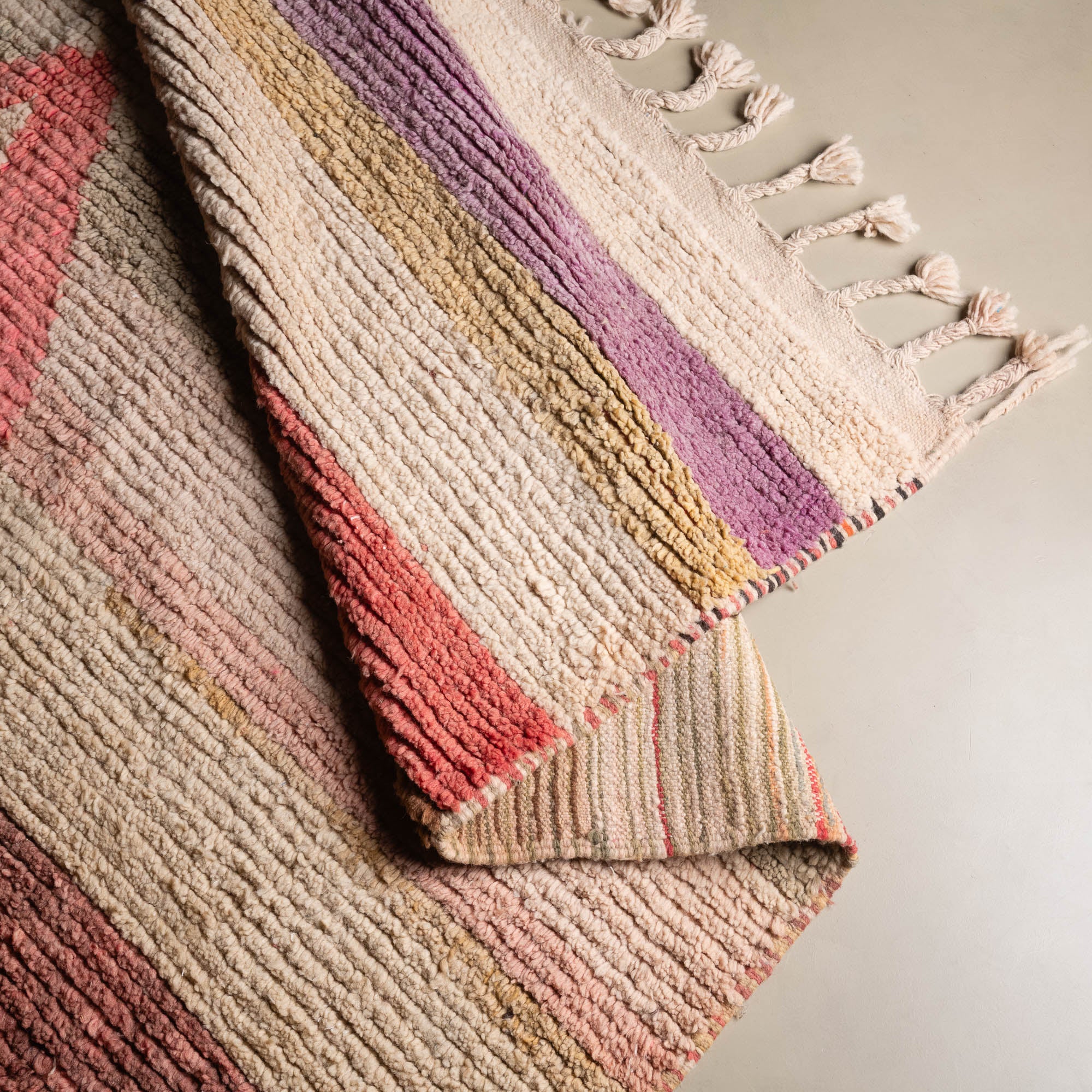 Boujad rugs are the result of a thousand-year-old know-how, transmitted from generation to generation by the women of the Boujad tribe. The colorful patterns of these rugs are inspired by nature and their beliefs.