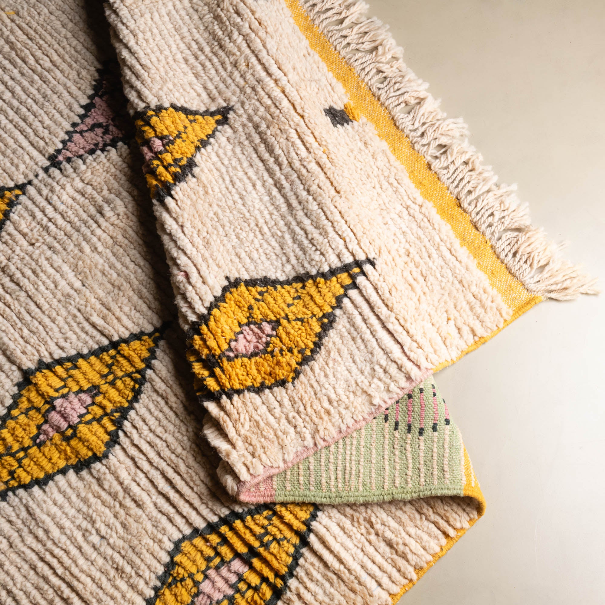Boujad rugs are the result of a thousand-year-old know-how, transmitted from generation to generation by the women of the Boujad tribe. The colorful patterns of these rugs are inspired by nature and their beliefs.