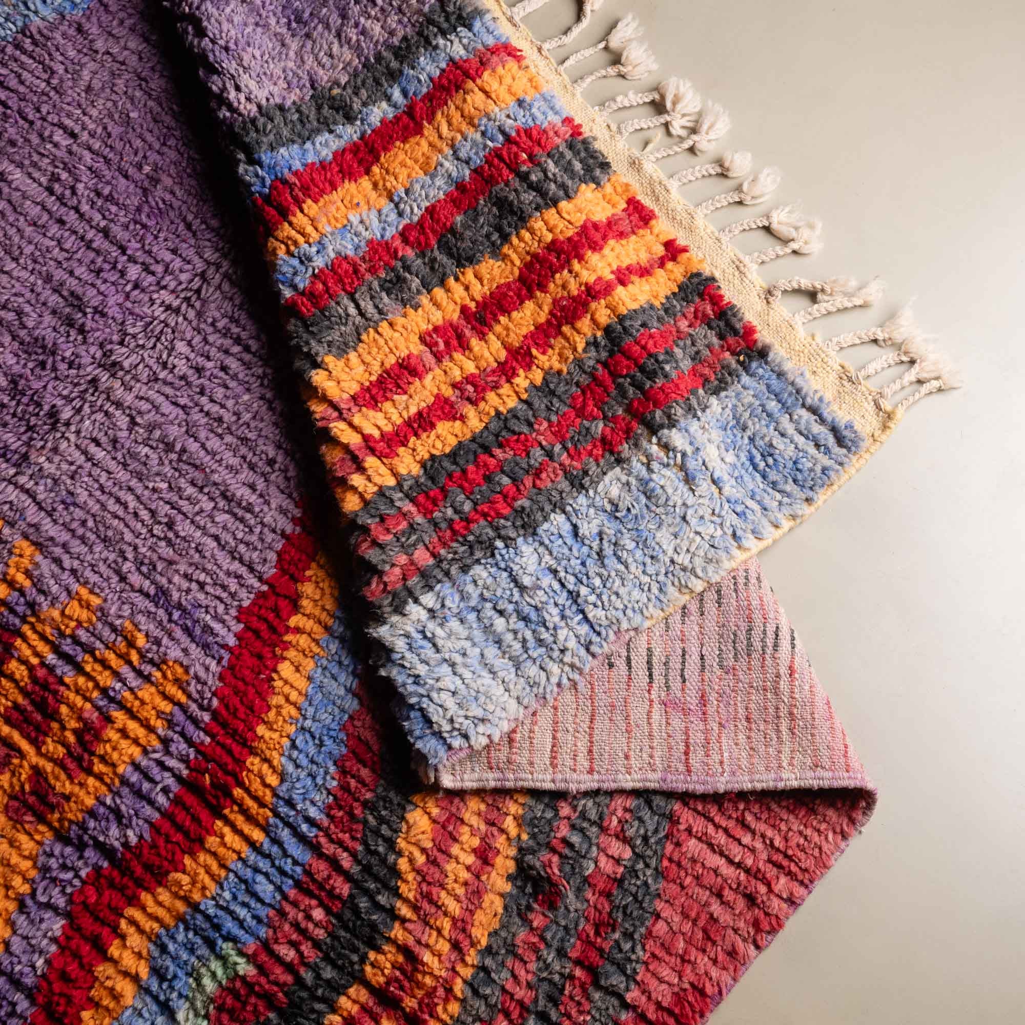 Boujad rugs are the result of a thousand-year-old know-how, transmitted from generation to generation by the women of the Boujad tribe. The colorful patterns of these rugs are inspired by nature and their beliefs.