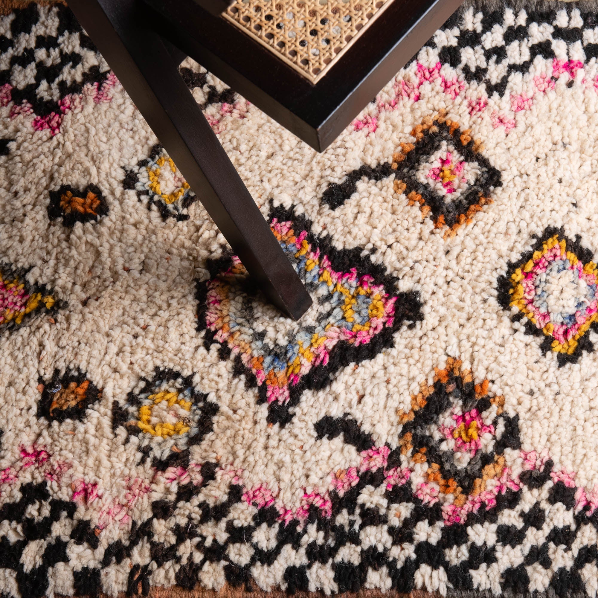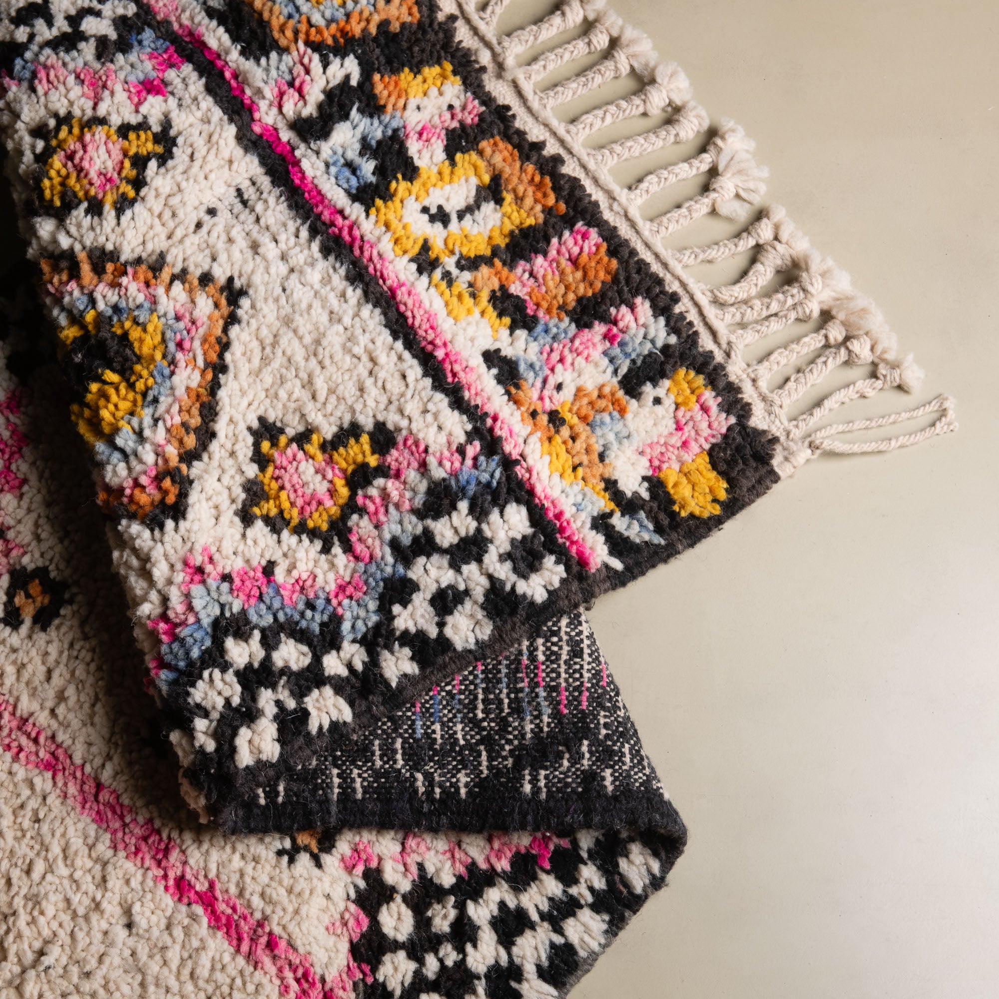 Boujad rugs are the result of a thousand-year-old know-how, transmitted from generation to generation by the women of the Boujad tribe. The colorful patterns of these rugs are inspired by nature and their beliefs.
