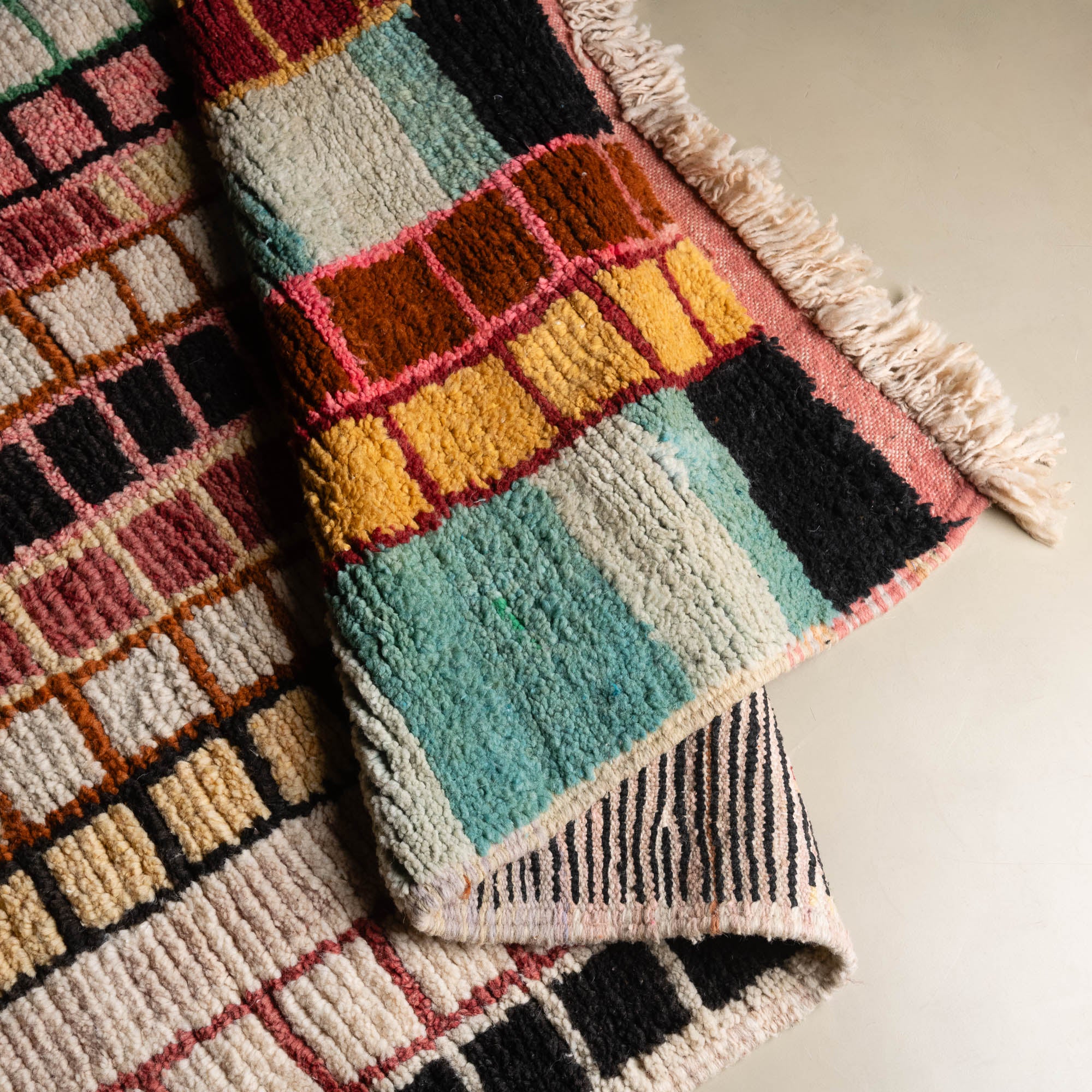 Boujad rugs are the result of a thousand-year-old know-how, transmitted from generation to generation by the women of the Boujad tribe. The colorful patterns of these rugs are inspired by nature and their beliefs.