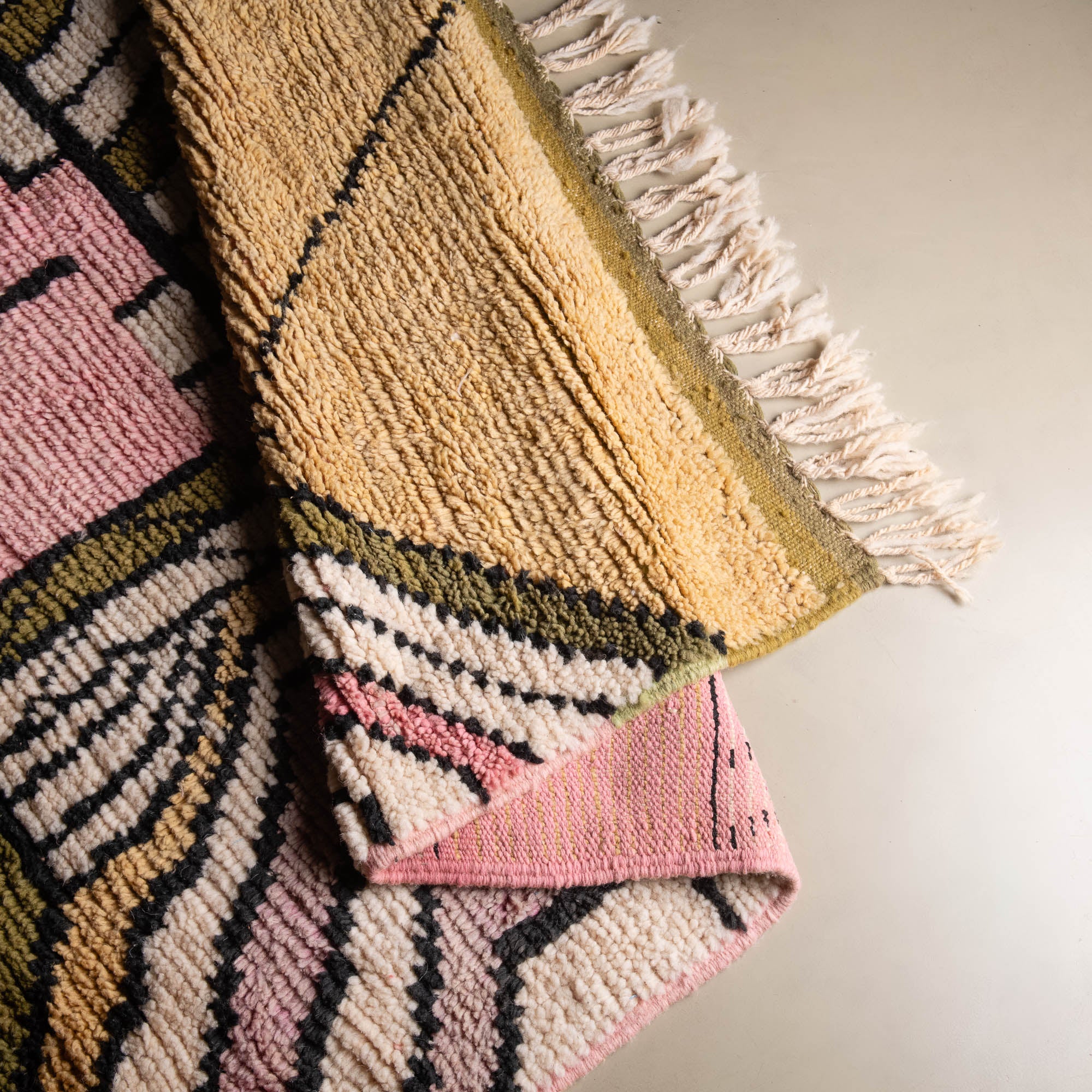 Boujad rugs are the result of a thousand-year-old know-how, transmitted from generation to generation by the women of the Boujad tribe. The colorful patterns of these rugs are inspired by nature and their beliefs.