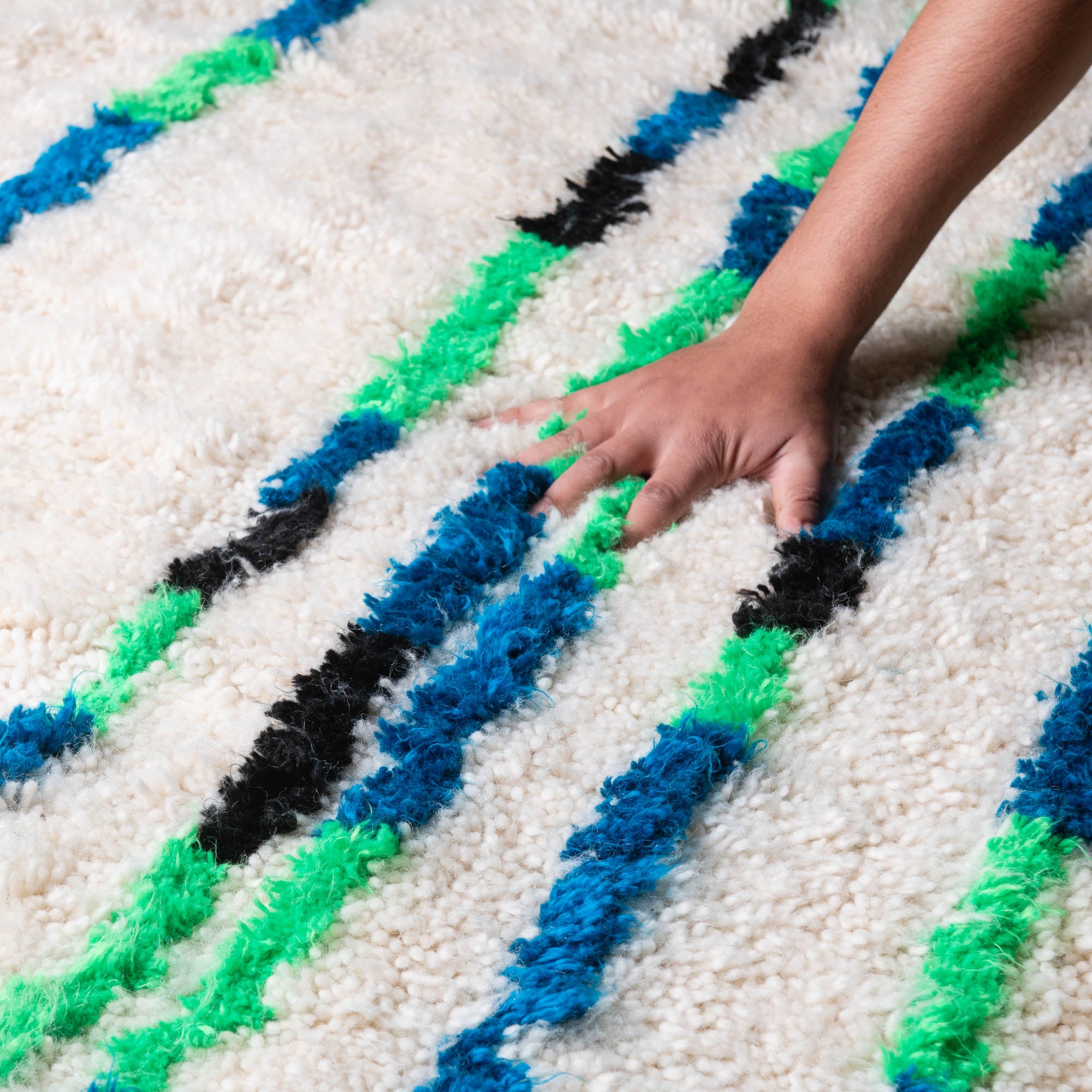 At Benisouk, we use only premium-grade wool from healthy, living sheep, ensuring our rugs are: